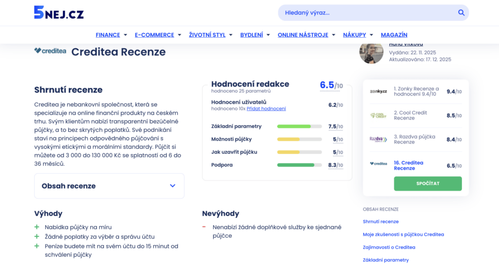 Společnost Creditea nabízí online půjčku fungující jako revolvingový úvěr s možností opakovaného čerpání až do výše 130 000 Kč. Produkt provozuje Provident Financial s.r.o., jedna z nejznámějších nebankovních společností na českém trhu s licencí ČNB. Jaké jsou skutečné zkušenosti klientů a vyplatí se Creditea jako finanční rezerva? Jaký je na Creditea kontakt? Jak probíhá přihlášení do Creditea účtu?