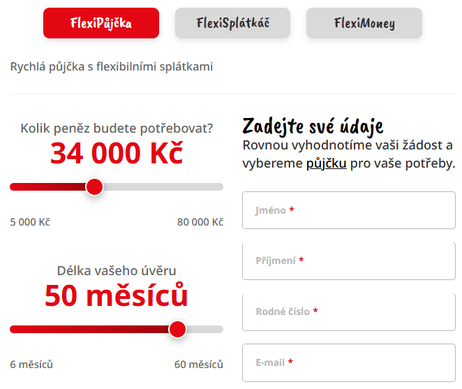 Výše půjčky se pohybuje od 5 000 Kč do 80 000 Kč se splatností až 60 měsíců.
