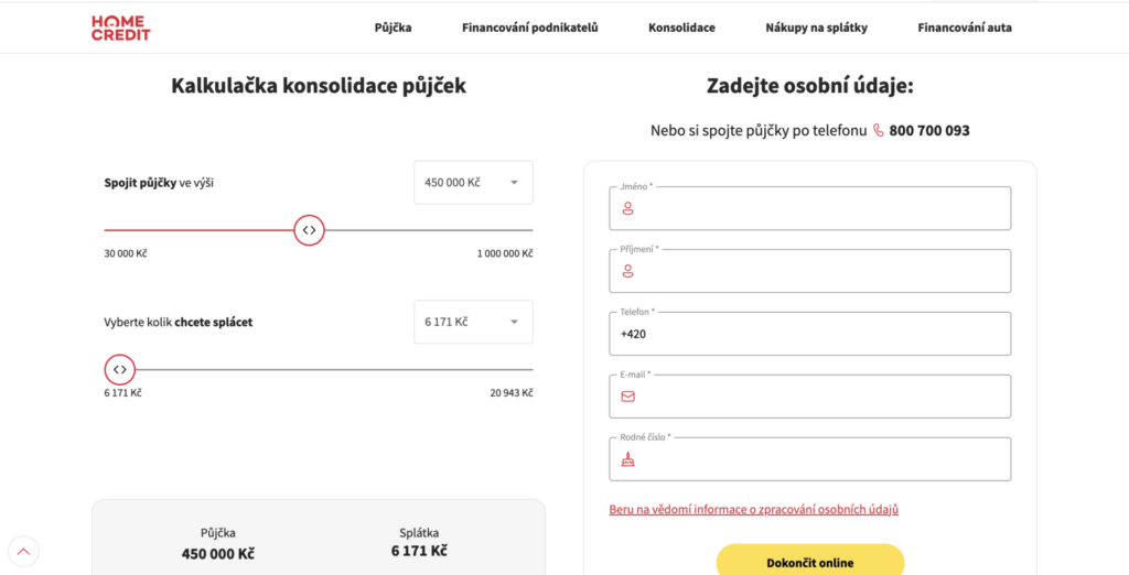 Před sjednáním konsolidace je vhodné využít online kalkulačku na webu homecredit.cz a porovnat nabídku s jinými poskytovateli.