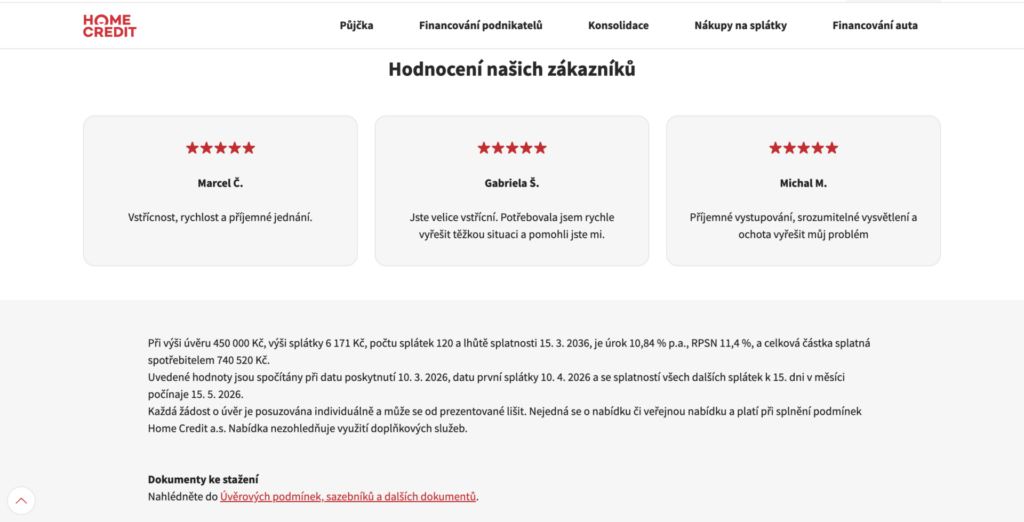 Autentické zkušenosti a recenze klientů Home Credit