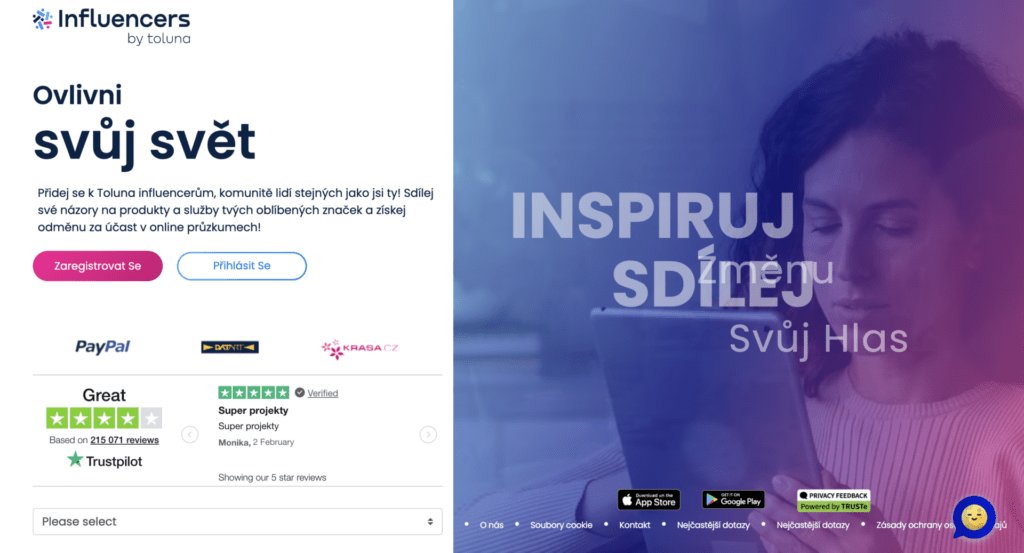 • Toluna – průzkumy trvající 15–20 minut, odměna 5–50 000 bodů směnitelných za hotovost.